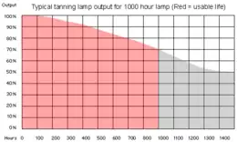 This is one of the most confusing aspects of tanning lamps in North America, as lamps in the US are not rated for their total output, but rather their ratio of UVA to UVB. Most people could be led to believe that a 6.5% lamp is stronger than a 5% lamp, while both lamps might have the same total UV output (or the 5% could even be stronger across the spectrum).