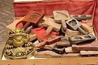 Tao kuih (Chinese: 红桃粿) is a kind of traditional food in Chaoshan area, Guangdong, China. Tao means peach in Chinese and kuih (粿) is a general name of a class of food, which is made from rice flour, flour and tapioca. “净米也,又米食也” is the explanation of kuih from Kangxi Dictionary.[1] In Chaoshan area, the housewife always make tao kuih in some big festivals, such as Spring Festival, Lantern Festival, Double Ninth Festival and so on. Tao kuih uses to sacrifice to ancestors. Tao kuih gets its name because people think it looks like a red peach. It is made for worship. In China, red peach symbolizes longevity and luck, it reflects people's aspiration when they pray.