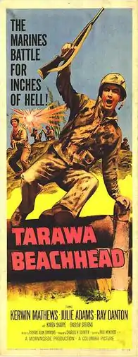 Tarawa Beachhead is a 1958 war film directed by Paul Wendkos. It stars Columbia Pictures contract star Kerwin Mathews in his first leading role and the husband and wife team of Ray Danton and Julie Adams.[1] The working title of the film was Flag over Tarawa and was originally to have starred Ronald Reagan.[2]