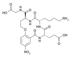Tavilermide (INN) (developmental code name MIM-D3) is a selective, cyclic tripeptide partial agonist of TrkA. (this class of drugs is sometimes referred to as nerve growth factor (NGF) mimetics)[1][2][3] Tavilermide was first synthesized by Burgess and co-workers at Texas A&M University with the intention of producing TrkA agonists.[4][5] It is under development by Mimetogen Pharmaceuticals as an ophthalmic (eye drop) solution for the treatment of dry eyes, and is in phase III clinical trials for this indication. Tavilermide is currently being evaluated in two multi-center phase III clinical studies in the United States for the treatment of dry eye disease. Tavilermide is also in phase I clinical trials for the treatment of glaucoma; studies are ongoing.[6][7]