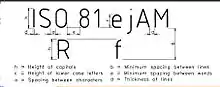 | Minimum spacing of base characters | b | (20/14)h | 3.50 | 5.00 | 7.00 | 10.0 | 14.0 | 20 | 28.0 |