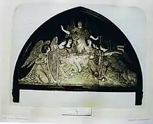 There is also a marble tarsia panel by Henri de Triqueti, who went on to work in the Albert Memorial Chapel at Windsor Castle. Installed in 1863, the panel was commissioned by Emily Fane de Salis and depicts the choir of angels.[23]