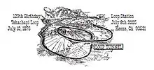 A large white cross, "The Cross at the Loop", stands atop the hill in the center of the loop in memory of two Southern Pacific Railroad employees killed on May 12, 1989, in a train derailment in San Bernardino, California.[6]