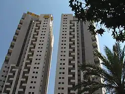 The Tel Aviv Towers are a complex of four skyscrapers in the city of Tel Aviv, Israel. All four buildings in the complex are complete. Towers 1 and 2 are each 107.75 meters in height, have 34 floors, and were built between 1998 and 2000. Each has 23,000 square metres of residential space and 225 apartments. The towers were designed by Riskin Architects. The original plan was to construct the four towers together.[1]