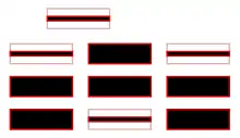 | Myer 2-element wig-wag | 11 22 | 1221 12 | 212 2121 | 111 2122 | 21 122 | 1112 121 | 1122 1 | 211 221 | 2 2111 | 2211 2212 | 1212 1211 | 112 222 | 2112 1111 | Serial, variable length | 1=flag left, 2=flag right [note 1][note 2] | [16] |