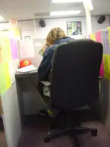 In Finland, call centers employ an estimated 100,000 people, but most work with customer relations in larger companies. 10,000 people are working for companies involved with telemarketing. Telemarketing often is the first job young people get. But it is also a way out or back to the labour market for handicapped, immigrants and pensioners, In Finland, the profession has had a bad reputation because of work-related injuries. The strain on neck, shoulders, eyes and ears can be considerable. Health problems have however been reduced considerably thanks to lightweight headsets, ergonomic working stations and more tasks, like documentation, done automatically by computers.[25]