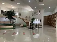 The Technical Implementation Unit (UPT) of the Telkom University Library which is located on the 3-4-5 floor of the Learning Center Building is one of the supporting facilities in providing various information to carry out the Tri Dharma of the University. The Telkom University library is developed as a Knowledge Management Center where there are curricular library collections, research-supporting library collections, general insight and literature collections, national literature collections, global insight library collections and others, with the number of library titles and the minimum number of collections following the provisions of the National Higher Education Standards (SNPT).[30][31]
