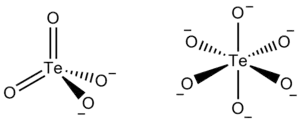 10[3] and polymeric anions with 6-coordinate tellurium such as (TeO4−