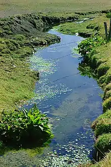 Once common, this frog is now rare and considered endangered by the IUCN.[1] During a survey in 2012 it was only found at about 10% of the visited sites and in low densities, leading to the suggestion of recognizing it as critically endangered.[12] The primary threats to the species are capture for human consumption, predation by introduced trout, pollution from mining, agriculture and human waste, and water fluctuations caused by the Upamayo Dam.[1][3][9] These factors have also contributed to the decline of the native Orestias pupfish, historically an important part of the diet of the frog, but not recorded in a recent study of its diet.[8] Although not yet detected in T. macrostomus, some of its relatives have strongly declined due to diseases like chytridiomycosis and Ranavirus.[1] Mass deaths have occurred in T. macrostomus, with a particular large one in 1996, but the reason for this is unknown.[1]