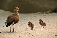 Temminck's courser (Cursorius temminckii) is a bird in the pratincole and courser family, Glareolidae. It is a wader which lives in sub-Saharan Africa. It is noted for laying its dark ash-black eggs in the burnt bushes and grass of the African savannah.[2][3][4]