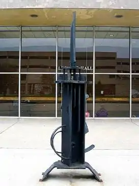 Temple VI, a public sculpture by American artist Austin Collins, is located on the Indiana University-Purdue University Indianapolis campus, which is near downtown Indianapolis, Indiana. The piece is on an indefinite loan from the artist to Indiana University-Purdue University Indianapolis (IUPUI) and is located outside of the east entrance to Lecture Hall, a building on IUPUI's campus. Lecture Hall, nicknamed LE on campus maps, is located at 325 University Boulevard in Indianapolis, Indiana in the United States.[1] The sculpture was created in 1996.