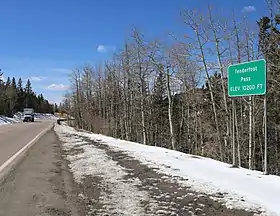 Tenderfoot Pass is a mountain pass northeast of Cripple Creek that reaches a peak elevation of 10,200 feet (3,100 m).