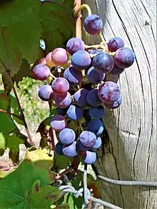 Teran grape is a variety of red grape[1] from Istria, Croatia. It is mostly found in western part of Istria.[2] It is a late-ripening variety and grows in large clusters with densely packed berries. Berries have highly resistant skin and deep ruby red color. The vine requires a lot of sun but less water. It is sensitive, both to extremely strong sun (burning hazard) and to excessive humidity (botrytis). When the grapes are fully ripe and all other needed conditions are met, a very good quality red wine[3] can be made from them. Its alcohol content is usually between 11 and 14%.