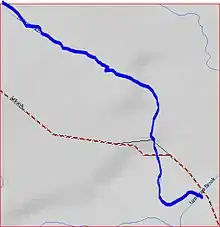 Terhune Run starts at 40°24′1″N 74°32′29″W,[1] near the intersection of Route 1 and Major Road. It flows south, crossing Major Road, until it drains into Lawrence Brook at 40°23′22″N 74°31′51″W,[1] in Reichler Park.