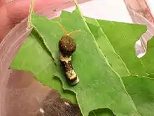 Second- or third-instar caterpillars of Genus Papilio butterflies, like this Papilio glaucus, emit terpenes from their osmeterium.