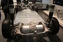 In contrast to most earlier battery electric vehicles including the Tesla Roadster, the battery pack of the Model S forms the floor of the vehicle between the axles, with several advantages: