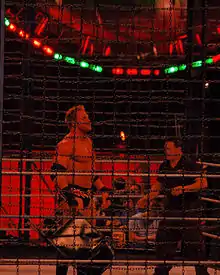 Martin debuted in the World Wrestling Federation on the October 25, 1998, episode of Sunday Night Heat as an unnamed bodyguard for the band Mötley Crüe, who were performing on the show. In a scripted event, Martin threw an overzealous fan off the stage during the band's rehearsal. On the December 14, 1998, episode of Raw is War, Martin aligned himself with WWF Champion The Rock by attacking The Rock's rival Triple H.[1] A week later on the December 21 episode of Raw, Martin made his in ring debut teaming with The Rock to defeat Triple H and X-Pac by disqualification. Martin went on to join The Corporation, a wrestling stable consisting of numerous other wrestlers. During this time, he received the ring name "Test", since he usually checked the mic saying "test...test..."[7][8]