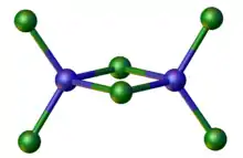 A related anion is [Zn2Cl6]2−, in which again Zn(II) adopts a tetrahedral geometry.