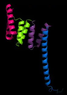 The tetratricopeptide repeat (TPR) is a structural motif. It consists of a degenerate 34 amino acid tandem repeat identified in a wide variety of proteins. It is found in tandem arrays of 3–16 motifs,[1] which form scaffolds to mediate protein–protein interactions and often the assembly of multiprotein complexes. These alpha-helix pair repeats usually fold together to produce a single, linear solenoid domain called a TPR domain. Proteins with such domains include the anaphase-promoting complex (APC) subunits cdc16, cdc23 and cdc27, the NADPH oxidase subunit p67-phox, hsp90-binding immunophilins, transcription factors, the protein kinase R (PKR), the major receptor for peroxisomal matrix protein import PEX5, protein arginine methyltransferase 9 (PRMT9), and mitochondrial import proteins.