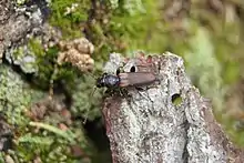 Adult beetles emerge in the spring and summer months and will mate soon after emergence. The adult male beetles release an aggregation phremone called fuscumol,[11] which will attract other brown spruce longhorn beetles to their location. After mating, females will select a suitable host tree for egg laying. Eggs may be laid on either standing trees or recently felled timber, with eggs laid on the bark.[8] Larvae hatch out and bore into the phloem of the wood where they will feed until they pupate the next spring and then emerge as adults.[8]