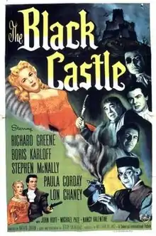 The Black Castle is a 1952 American gothic horror film directed by Nathan H. Juran and starring Richard Greene, Boris Karloff, Stephen McNally, Rita Corday and Lon Chaney Jr. It was produced by William Alland. The film was made in the United States but premiered in Sweden.[1]