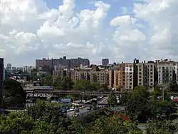 In the 1970s, parts of the Bronx were plagued by a wave of arson. The burning of buildings was predominantly in the poorest communities, such as the South Bronx. One explanation of this event was that landlords decided to burn their low property-value buildings and take the insurance money, as it was easier for them to get insurance money than to try to refurbish a dilapidated building or sell a building in a severely distressed area.[62] The Bronx became identified with a high rate of poverty and unemployment, which was mainly a persistent problem in the South Bronx.[63] There were cases where tenants set fire to the building they lived in so they could qualify for emergency relocations by city social service agencies to better residences, sometimes being relocated to other parts of the city.