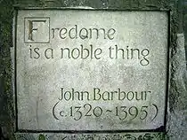 Barbour's influence on later Scottish writers can be seen in Robert Burns' Scots Wha Hae, and Walter Scott's The Lord of the Isles and Castle Dangerous.[4]