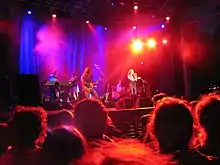 In 2012, the Cardigans received a lucrative offer from Hultsfred Festival to perform the album Gran Turismo in full.[9] After initial hesitation, the band decided to accept the offer "as it felt like a good way of tearing us out of our strange new everyday life," according to Persson.[10] Peter Svensson declined to participate, although he had no objection to the band touring without him. They recruited singer-songwriter Oskar Humlebo to fill in for Svensson, and asked their agent to seek more shows for them to play.[9] Ultimately, the band made their live comeback with shows in Lund and Copenhagen ahead of Hultsfred, before playing in Poland, Finland, Russia, Indonesia, Taiwan and Japan, with a scheduled concert in Israel cancelled by the promoter.[11] Most of these shows involved performing Gran Turismo in full, followed by an assortment of hits from their other albums.