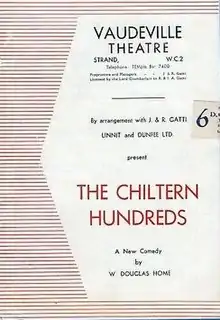 The Chiltern Hundreds is a 1947 English-language stage comedy by William Douglas-Home, which ran for 651 performances at London's Vaudeville Theatre.[1] It was adapted as a film in 1949, under the same title.[2] Revivals of the play have included a 1999 production, also at the Vaudeville, starring Edward Fox.[3]