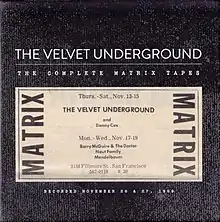 The Complete Matrix Tapes is a live album by the New York City-based experimental rock band the Velvet Underground, released on November 20, 2015. It features unexpurgated recordings of the band's two-night stint on November 26 and 27, 1969, at San Francisco club The Matrix, owned and operated by Jefferson Airplane's Marty Balin.