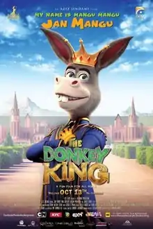 The Donkey King (Urdu: دا ڈونکی كِنگ) is a 2018 Pakistani computer animated comedy film, directed by Aziz Jindani. The film features the voices of Jan Rambo, Ismail Tara, Hina Dilpazeer, Ghulam Mohiuddin, and Jawed Sheikh. It was released in Pakistan on 13 October 2018 by Geo Films and Talisman Studios.[5] After its national success, it became the first Pakistani film to be dubbed into ten languages for multiple international theatrical releases, distributed worldwide by Annalisa Zanierato, for Pantera Film.[2]