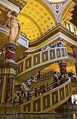 Like Caesars Palace, a Roman theme is used throughout the Forum Shops.[3][40] The mall features an abundance of marble,[3][8] and several fountains are located inside and out.[41] The interior includes sky-painted ceilings which change from day to night.[3][42][43]