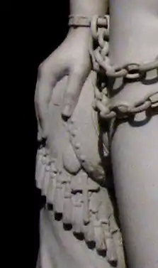 The statue depicts a young woman, nude, bound in chains; in one hand she holds a small cross on a chain. Powers himself described the subject of the work thus: