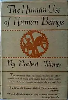 The Human Use of Human Beings is a book by Norbert Wiener, the founding thinker of cybernetics theory and an influential advocate of automation; it was first published in 1950 and revised in 1954. The text argues for the benefits of automation to society; it analyzes the meaning of productive communication and discusses ways for humans and machines to cooperate, with the potential to amplify human power and release people from the repetitive drudgery of manual labor, in favor of more creative pursuits in knowledge work and the arts. The risk that such changes might harm society (through dehumanization or subordination of our species) is explored, and suggestions are offered on how to avoid such risk.