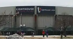 Banners displayed along the outside of Nassau Veterans Memorial Coliseum in 2009, promoting the Lighthouse Project