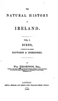 The Natural History of Ireland was the first attempt to produce an account of the fauna of Ireland. "With so much already done pictorially and descriptively, on the subject of British ornithology, it may be considered superfluous to treat of the birds of Ireland in a separate work, but, in the author's opinion, every country should possess a Natural History specially appertaining to itself. In the publications referred to, the birds of Ireland have been but briefly indicated, — a species generally dis- missed in a single line, and so much appearing only in two works; — those of Sir Win. Jardine and Mr. Yarrell".