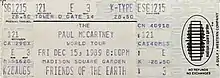 The Paul McCartney World Tour was a worldwide concert tour by Paul McCartney, notable for being McCartney's first tour under his own name, and for the monumental painted stage sets by artist Brian Clarke. The 103-gig tour, which ran from 1989 through 1990, included a concert played to what was then the largest stadium crowd in the history of rock and roll.[1]