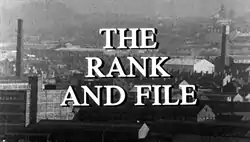 "The Rank and File" is the 21st episode of first season of the British BBC anthology TV series Play for Today. The episode was a television play that was originally broadcast on 20 May 1971.[1] "The Rank and File" was written by Jim Allen, directed by Ken Loach and produced by Graeme McDonald. It is included in the Ken Loach at the BBC boxset released in 2011, although the recording is of unusually poor quality for a DVD release.