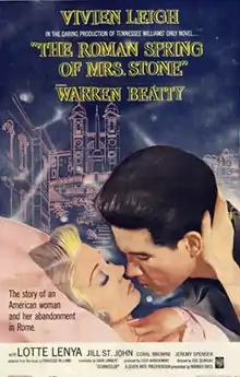 The Roman Spring of Mrs. Stone is a 1961 British romantic drama film made by Warner Bros.[1][2][3] It was directed by José Quintero and produced by Louis de Rochemont with Lothar Wolff as associate producer. The screenplay was written by Gavin Lambert and Jan Read and based on the novel by Tennessee Williams. The music score was by Richard Addinsell and the cinematography by Harry Waxman.
