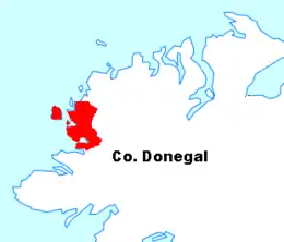 The Rosses (officially known by its Irish language name, Na Rosa;[1] in the genitive case Na Rosann) is a geographical and social region in the west of County Donegal, Ireland, with a population of over 7,000 centred on the town of Dungloe, which acts as the educational, shopping and civic centre for the area. Defined by physical boundaries in the form of rivers, as well as history and language use, the area has a distinctive identity, separate from the rest of Donegal. The extensive region lies between the parish of Gweedore to the north and the town of Glenties to the south. A large part of the Rosses is in the Gaeltacht, which means that Irish is the spoken language. The Rosses, Cloughaneely and Gweedore, known locally as "the three parishes" with 16,000 Irish speakers, together form a social and cultural region different from the rest of the county, with Gweedore serving as the main centre for socialising and industry.[2][3] Gaeltacht an Láir is another Irish-speaking area.