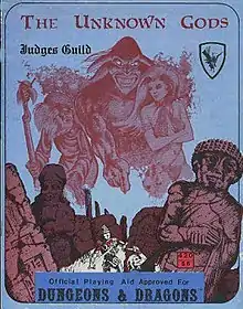 The Unknown Gods is a supplement briefly describing 83 gods and deities, all illustrated by Jennell Jaquays[lower-alpha 1].[1]