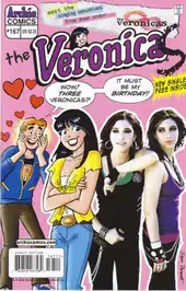 A settlement was reached that included a cross-promotion deal, including an appearance in an issue of Veronica's series.[13] The issue (Veronica #167, released on 1 March 2006) featured the Veronicas in the feature story, What's In A Name?, in which they meet Lodge, perform in Riverdale and spend a day there, as well as a card with a code allowing a free download of their single "4ever" in MP3 form.[14] A few months later, Archie and Friends (No. 100) featured the Archies meeting the Veronicas.[15] The next issue of Archie and Friends (No. 101) also featured the Veronicas, with Archie as their biggest fan.[16]