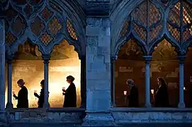 Timepiece was an ambitious project, performed in the cloisters of Norwich Cathedral, involving performances on the hour every hour between midday and midnight on 25 May 2018. It involved four choirs (The Male Boys Choir, Big Sky, Harmonium, The Voice Project Choir), a professional quintet and instrumentalists. It was commissioned by Norfolk & Norwich Festival and was free to the general public.