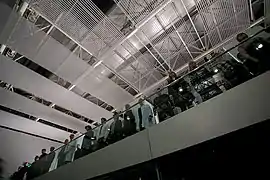 The Observatory was a site-responsive piece presented as part of the Norfolk & Norwich Festival and created as part of a partnership with the Sainsbury Centre for Visual Arts (SCVA) and the University of East Anglia (UEA). The piece was an exploration of humankind's relationship with space - and our gradual attempts to understand and explore it with the poetic, the scientific and the musical. Weightlessness, distance, fear of the unknown, infinity and astronomical geometry inspired this piece which was staged in and around the SCVA. The SCVA provided a futuristic background for this piece which informed the design of the show – and also the opportunity for the audience to experience this iconic building quite differently.