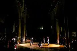 This site-responsive piece took place in Norwich Cathedral on 23 January 2017 – making extensive use of the space in a carefully choreographed promenade performance. The seating was removed from the nave to allow the performers to move freely throughout the space and to increase the effect of the lighting design.