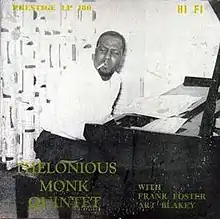 Thelonious Monk Quintet (with Frank Foster, Art Blakey) is a 10" LP by American jazz pianist and composer Thelonious Monk, performed by the Thelonious Monk Quintet. It was originally released in 1954 as the third of five 10" LP albums by Monk for Prestige (PrLP 180). Its contents were later re-released in sequence as side 1 of the 12-inch album Monk. It has rarely been re-released in its original format, although it was included in a boxed set by Craft Records in a limited edition in 2017.[1][2][3][4]