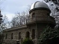 The Theodor Jacobsen Observatory is the on-campus observatory of the University of Washington. Built in 1895, it is the second oldest building on campus and was constructed using the remaining Tenino sandstone blocks from Denny Hall, the oldest and first building on campus. The refracting telescope, enclosed within the dome, has a 6-inch Brashear objective lens of a Warner & Swasey equatorial mount. The observatory also includes a transit room on the west side and a -seat classroom, which was built later, on the south side.