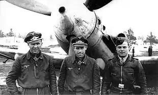 Weissenberger was appointed Gruppenkommandeur (group commander) of II. Gruppe of JG 5 on 26 March 1944, succeeding Hauptmann Horst Carganico who was transferred. Command of 6. Staffel was passed to Oberleutnant Ernst Scheufele.[15] He claimed three aircraft shot down on 4 April, and four more on 9 April, taking his victories from 159 to 162. At the end of April 1944, II. Gruppe relocated to Jakobstadt, withdrawing from the Arctic Front for the last time. On 17 May he claimed victories 169 to 172, and the next day shot down three Yakovlev Yak-9s, taking his total to 175. These were his last victories on the Eastern Front. At the end of May 1944, II. Gruppe was transferred to Defense of the Reich duties and was relocated to Gardelegen Airfield in Germany.[14]