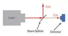 There are various ways of integrating a power measurement. In Fig 6 the integration in the beam path behind a beam splitter is shown. Fig 7 illustrates the option of mounting the detector behind the back mirror of a laser cavity for continuous monitoring. Beam losses further down the beam path, caused e.g. by a deterioration of optics, are not mapped in this type of arrangement.