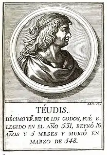 Theudis[lower-alpha 1] (Spanish: Teudis, Portuguese: Têudis), (c. 480 – June 548) was king of the Visigoths in Hispania from 531 to 548.